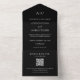 This classic black monogram all in one wedding invitation blends modern style with timeless elegance. Featuring a sleek black background and personalised monogram, it offers a simple yet sophisticated way to announce your big day. The all-in-one format includes the invitation along with a QR code for RSVPs and event details, making it both practical and stylish.