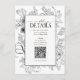 QR Code Black White Floral Wedding Details Enclosure Card
