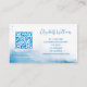Simple business card with a custom name in an elegant handwritten font on a blue white watercolor background. Templates for your name, title, phone number, mail and website address, QR-code to your website or social media account.