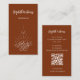 A line art rose and moons in a mystical boho style on a terracotta background. Your name in an elegant handwritten font. With a scannable qr code at the backside. For yoga studio, yoga teacher, massage studios, massage therapy, meditation teacher, energy healer, natural health counsellor, spas or wellness