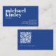 Simple elegant typography plain royal blue and white trendy networking QR code business card. Suitable for a teacher, writer, designer, photographer, consultant, makeup artist, hairstylist, or any other independent professional. ++++++++++++ Easy to personalize with your details and QR code (automatically generated by simply inserting your URL link).