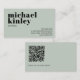 Simple elegant typography plain sage green and black trendy networking QR code business card. Suitable for a teacher, writer, designer, photographer, consultant, makeup artist, hairstylist, or any other independant professional. ++++++++++++ Easy to personalise with your details and QR code (automatically generated by simply inserting your URL link).