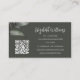 Professional business card featuring a grayish green sketch of an eucalyptus branch. The plain dark grayish green background gives the design a touch of minimalism. A custom name in an elegant handwritten script. With a template for your QR code and your socials on the back. Perfect for vacation rental property managers, interior designers, home staging, horticulturists, travel agents, florists, landscape designer, fashion boutiques, beach boutiques, travel agents or any island based business.