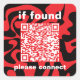 QR Code Bright Cherry Red lost found Square Sticker