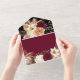 Elegant all-in-one wedding invitation featuring a dramatic black background, deep burgundy accents, and lush floral artwork. Perfect for fall or winter weddings, this template includes a built-in RSVP card with QR code and return address printing. A stylish and convenient choice for couples hosting a seasonal celebration in autumn or winter. Eco-friendly design with modern functionality.