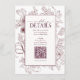 QR Code Burgundy Floral Wedding Details Enclosure Card