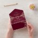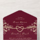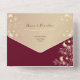 Elegant all-in-one wedding invitation in rich burgundy and gold floral design. Features a modern heart detail, matching florals, and a convenient QR code for RSVP and wedding website info. This seal & send invitation does not require a separate envelope – simply fold, seal, and mail. Perfect for romantic fall and winter weddings.