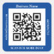 QR Code Bus. Name Website Promo, Deep Blue Square Sticker