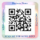 Personalise this sticker with your black and white QR Code and Business Name, website and number code in blue with iridescent border. Version 2.