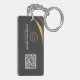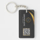 Personalised modern black and gold keychain design features your business logo and custom QR code. Add your company name/title and logo (photo or other graphic). You can customise the text size, font and colour to suit your own personal preference. Input a URL address to create a scannable QR code linked to your website, social media profiles, or any other platform.