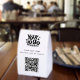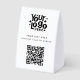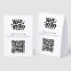 A modern minimalist personalized branded business paper table tent with business logo and QR code. Personalize with your logo, QR code and details to create your own unique elegant black and white business paper table tent. Customize even further with a custom color background or font.