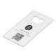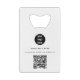 A modern minimalist personalised business bottle opener with business logo and QR code. Personalise with your logo, QR code and details to create your own unique elegant black and white business bottle opener.