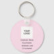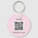 QR Code Business Logo, professional, custom keychain. Pink and white, simple design. Perfect for your company, business. Promotional keychains.