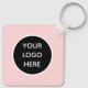 QR Code Business Logo, professional, custom doublesided keychain. Pink, simple design. Perfect for your company, business. Promotional keychains.
