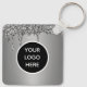 QR Code Business Logo, professional, silver, custom double-sided keychain. Simple design. Perfect for your company, business. Promotional keychains.