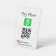 A QR cash app pedestal sign is a type of signage that is used to promote and provide information about a cash app that utilises QR codes for transactions. The sign is typically placed on a pedestal or stand, making it easily visible and accessible to users. It usually features a large QR code that users can scan with their smartphones to initiate a payment or transfer funds. The sign may also include the name and logo of the cash app, as well as any additional information or instructions for users. The design of the sign can vary, but it is often sleek and modern, with clear and concise messaging to attract attention and encourage usage.