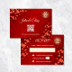 Red cherry blossoms on a shimmering red background and a gold double happiness symbol. RSVP Chinese Wedding Card. On the backside is a scannable qr code for your wedding website.