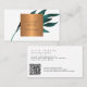QR CODE chic blue leaf glam gold interior designer Business Card