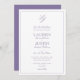 A classic, elegant lavender and white monogram wedding invitation, featuring script calligraphy. Perfect for the modern bride having a formal affair. Save the cost on enclosure stationary with our QR Code included on the back of the invitation for RSVP and Wedding details. Contact designer for matching products. Copyright Anastasia Surridge for Elegant Invites, all rights reserved.