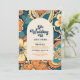 QR Code Colourful Groovy Retro 70s Floral Wedding Invitation