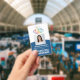 QR Code Corporate Logo Employee Photo Classic Blue ID Badge