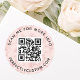 Round, light blush pink marble stickers with your QR code and custom text. Change fonts and font colours, move and resize elements with the design tool. Follow us on Facebook: @businessstationery for more products, news, sales and more.