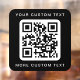 Black and white or custom colour window cling with your QR code and custom text, one line at the top and one at the bottom. Square design with rounded corners. Change fonts and colours, move and resize elements with the design tool. Follow us on Facebook: @businessstationery or Instagram: @business.perfectlycustom for more products, news, sales and more. Perfectlycustom.com