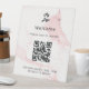 QR code customer registration pink marble welcome Pedestal Sign