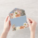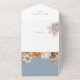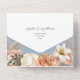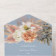 Elegantna dusty blue all-in-one pozivnica za venčanje sa prelepim cvetnim detaljima u breskvastim, belim i krem tonovima. Ova moderna pozivnica uključuje ugrađen QR code za RSVP i wedding website, što gostima omogućava brz i jednostavan odgovor. Savršena za parove koji žele da spoje romantičan dizajn sa praktičnošću. Eco-friendly opcija, bez koverte, sa prostorom za adresu i povratnu adresu. Idealna za spring, summer i fall weddings.