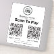 Personalise a Sticker For your shop with this custom QR Code Template! Make it easy for your clients and customers to point, scan and pay! By scanning your QR code, it will take them directly to your social media page or payment app account. Add your details, All text style, colours, sizes can be modified to fit your needs. If you need help or matching items, please contact me.