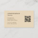 Creative and chic professional business card design template : An earthy neutral colour (pastel beige) background with gold foil paint frame for a luxury touch. In the middle your name is written on calligraphy script. This card is scannable and smart thanks to its QR code. The design is generic and feminine; unique for your personal branding as event planner, interior designer, makeup artist, cosmetologist, aesthetician, aesthetician care, beauty salon owner, boutique owner, massage therapist, beautician, and more.