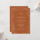 The invitation features an intricate leafy line art motif framing your special invitation details, where you feature the couples' initials in a beautifully crafted monogram. A hand lettered calligraphy font adds an elegant touch that will bring the whole look together, in a timeless colour combo of Burnt Orange and bright white. But that’s not all - flip this beautiful card over and you’ll find a convenient QR code that can be scanned to take your wedding guests straight to your personalised website so they have access to all of their details in one area. This streamlined feature is great for keeping track of RSVPs as well as giving your guests easy-to-navigate information about your ceremony, reception location, photos and much more.