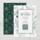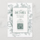 QR Code Emerald Green Floral Wedding Details Enclosure Card