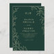 QR Code Emerald Green Gold Monogram Leaf Wedding Invitation