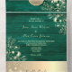 Elegant emerald green rustic barn wood all-in-one wedding invitation with gold floral artwork, romantic string lights, and personalized monogram. This invitation folds into its own envelope and features a convenient QR code for RSVP and your wedding website. The deep emerald wood background paired with glowing gold flowers and soft string lights creates a warm, elegant rustic look — perfect for barn, fall, or evening weddings. A beautiful blend of countryside charm and modern sophistication.