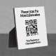 QR code on a countertop plaque to show to customers. QR code display at a reception desk for example.