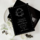 We're loving this trendy, formal wedding invitation in Black White! Simple, elegant, and oh-so-pretty, it features a hand drawn leafy wreath encircling a modern wedding monogram. Traditional in wording, it features the names of the parents hosting the wedding, and is personalised in elegant typography, and accented with hand-lettered calligraphy. Finally, it is trimmed in a delicate frame. But that’s not all - flip this beautiful card over and you’ll find a convenient QR code that can be scanned to take your wedding guests straight to your personalised website so they have access to all of their details in one area. This streamlined feature is great for keeping track of RSVPs as well as giving your guests easy-to-navigate information about your ceremony, reception location, photos and much more. View suite here: https://www.zazzle.com/collections/black_white_leafy_crest_monogram_wedding-119655862125661501 Contact designer for matching products to complete the suite, OR for colour variations of this design. Copyright Anastasia Surridge for Elegant Invites, all rights reserved.