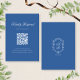 QR Code Formal Blue Monogram Crest Script Wedding RSVP Card