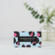 Modern, girly animalier networking card featuring digital image of leopard print in light baby blue black and pink . Black stripe overlay. Great for beauty, fashion , entertainment and event professionals, nail artist, fashion blogger, lawyer, realtor and much more