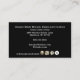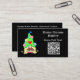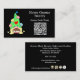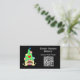 QR Code Gnome Hometown Bakery Black Business Card. Funny baker gnome with a macaron hat and holding a piece of cake. A fun bakery business card. Personalise this template with your information. Customise it further for more changes. Four social media symbols are on the back of the card. When customising it, any of the images can be taken off and moved around.