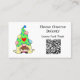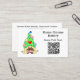 QR Code Gnome Hometown Bakery Business Card. Funny baker gnome with a macaron hat and holding a piece of cake. A fun bakery business card. Personalise this template with your information. Customise it further for more changes. Four social media symbols are on the back of the card. When customising it, any of the images can be taken off and moved around.