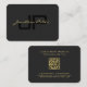 QR Code Gold Script Text Elegant Black Mighty Business Card