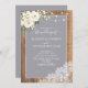 QR Code Grey Rustic Wood Lace Script Wedding Invitation