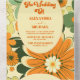 QR Code Groovy Boho Retro Floral Wedding All In One Invitation