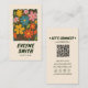QR Code Hand Drawn Colourful Retro Funky Floral Business Card