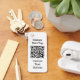 Custom QR code keychain. Custom background colour (use a light one). Custom text on both sides.