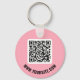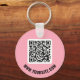 Custom QR code keychain. Custom background colour. Custom text on both sides.