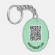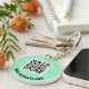 Custom QR code keychain. Custom background colour. Custom text on both sides.