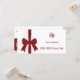 The design includes a decorative red ribbon on a confetti background, with the company custom logo and name displayed prominently on the right. Beneath this, the voucher value is clearly presented.