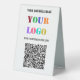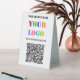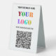 Custom Colours and Font - Your QR Code and Logo , Text Promotional Business Personalised Table Tent Signs - Add Your QR Code - Image and Logo / Name - Text / Website - Information / more - Resize and move or remove and add elements / text with Customisation tool. Choose / add your favourite background and text colours / font / size ! Good Luck - Be Happy :)